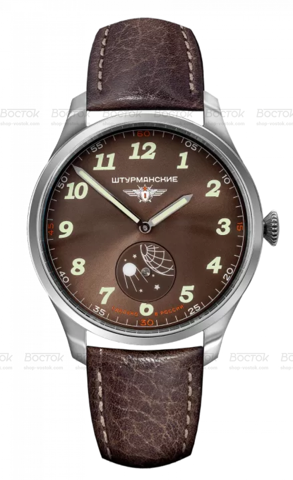 Запуск на орбиту Земли первого искусственного спутника стал настоящим прорывом в освоении космоса. Штурманские увековечили это революционное событие в специальной коллекции. Часы Спутник Наследие Малая Секунда выводят понятия красоты, надежности и функциональности на новый, ранее недостижимый уровень. Часы выглядят строго и в то же время стильно и элегантно. Циферблат закрыт выпуклым минеральным стеклом. Темно-синий кожаный ремешок комфортно облегает руку и перекликается по цвету с циферблатом. Люминесцентные индексы видны даже в темноте. Внутри стального корпуса спрятан японский кварцевый механизм VD78 Seiko, который работает от батарейки и отличается погрешностью в ходе не более 10-20 секунд в месяц. Часы защищены от влаги. Особую оригинальность модели придает миниатюрный секундный циферблат с изображением спутника.